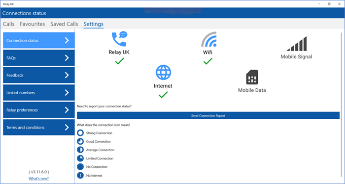 - The Connection status page is now available under ‘Settings’ on tablets and Windows PCs, making it easier to check when Relay UK is available and to let us know if you ever experience a connection issue